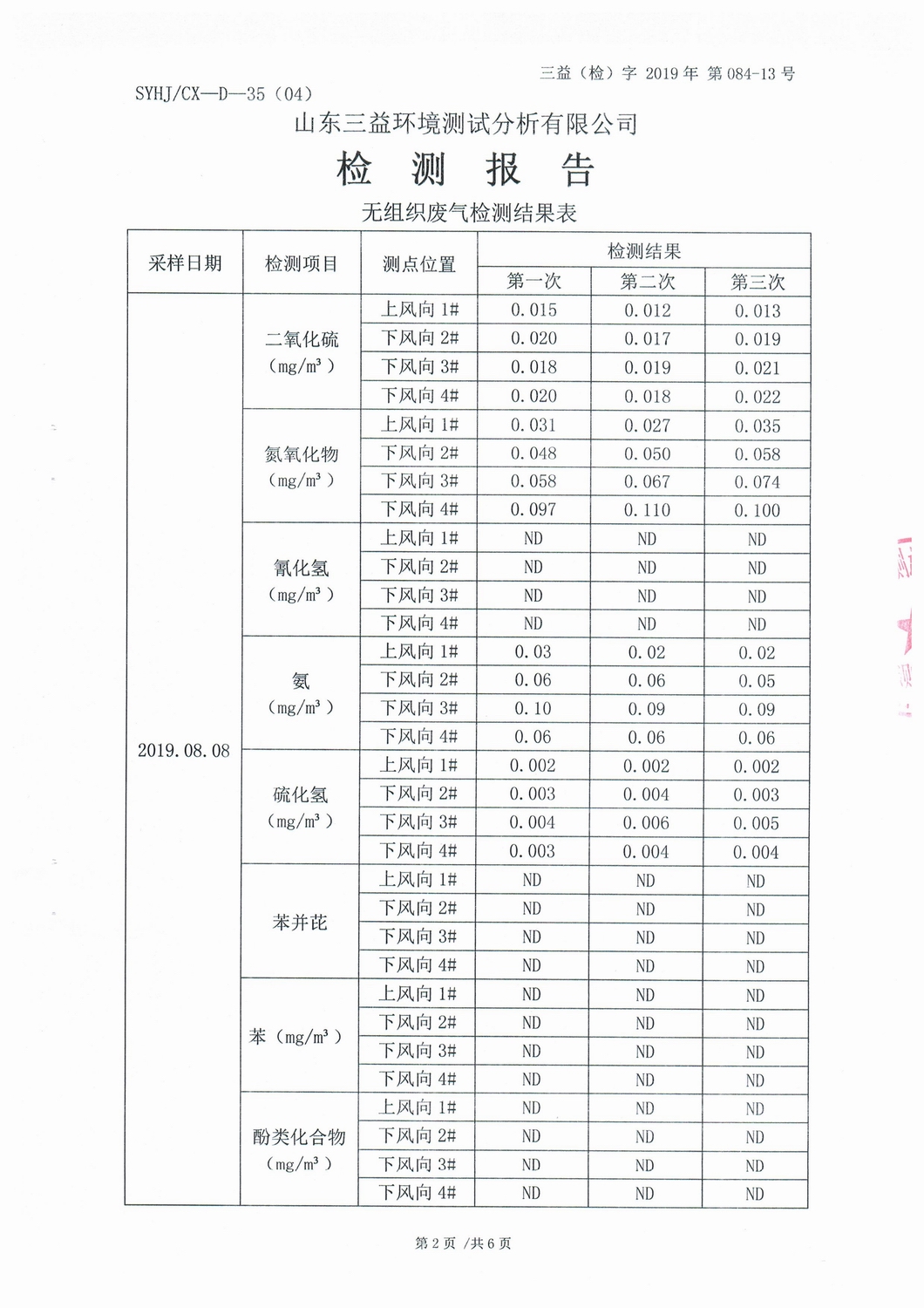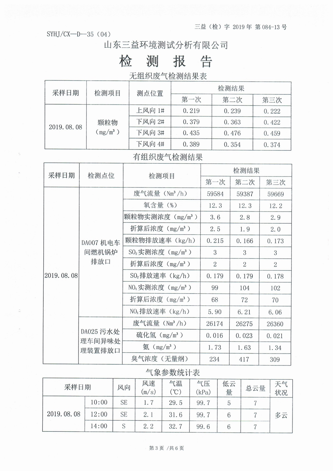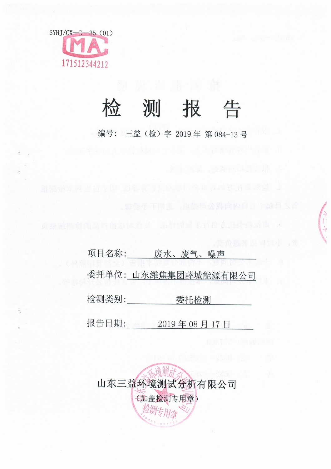 山東濰焦集團(tuán)薛城能源有限公司8月份檢測(cè)報(bào)告