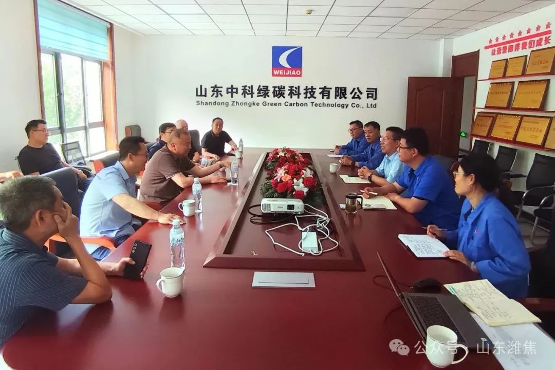 5 月 22 日下午,清華大學化學工程系庹新團隊到訪中科綠碳公司,圍繞中試合作展開交流。薛城開發(fā)區(qū)主任田鋒、集團公司總經理助理王玉增、公司總經理趙偉明等陪同。
