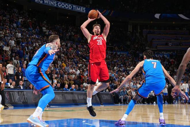常規(guī)時(shí)間內(nèi),火箭在多數(shù)時(shí)刻占據(jù)上風(fēng),但雷霆并未慌亂,在末節(jié)將比分扳平,并拖入加時(shí)賽。首加時(shí)雷霆率先拿出殺招,霍姆格倫和亞歷山大連中三分打?;鸺?,本以為勝局已定,可申京站了出來(lái):突破扣籃+關(guān)鍵傳球,硬是把比分扳平拖入雙加時(shí)!不得不提的是,申京此役貢獻(xiàn)了39分11籃板和7助攻的數(shù)據(jù),這是真的拼盡全力了!